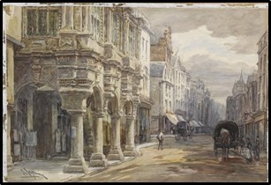 Jerry showed a series of images of the Guildhall in High Street. The names of all the mayors down through the ages are known. Only one of them was executed! Jerry recounted the story of the Cathedral precentor, Walter Lechlade who was murdered as a result of a conspiracy between the Dean (John Pycot) and the mayor (Alured de Porta). Five of the conspirators plus the mayor, were executed in 1235, but the Dean (as a churchman) was merely banished to Wales. Another image which was shown was dated to before 1888 as there were no tram lines in the High Street. The trams ceased to run in 1931, as the tracks were wearing out and there was a difficulty in maintaining electric power.